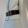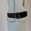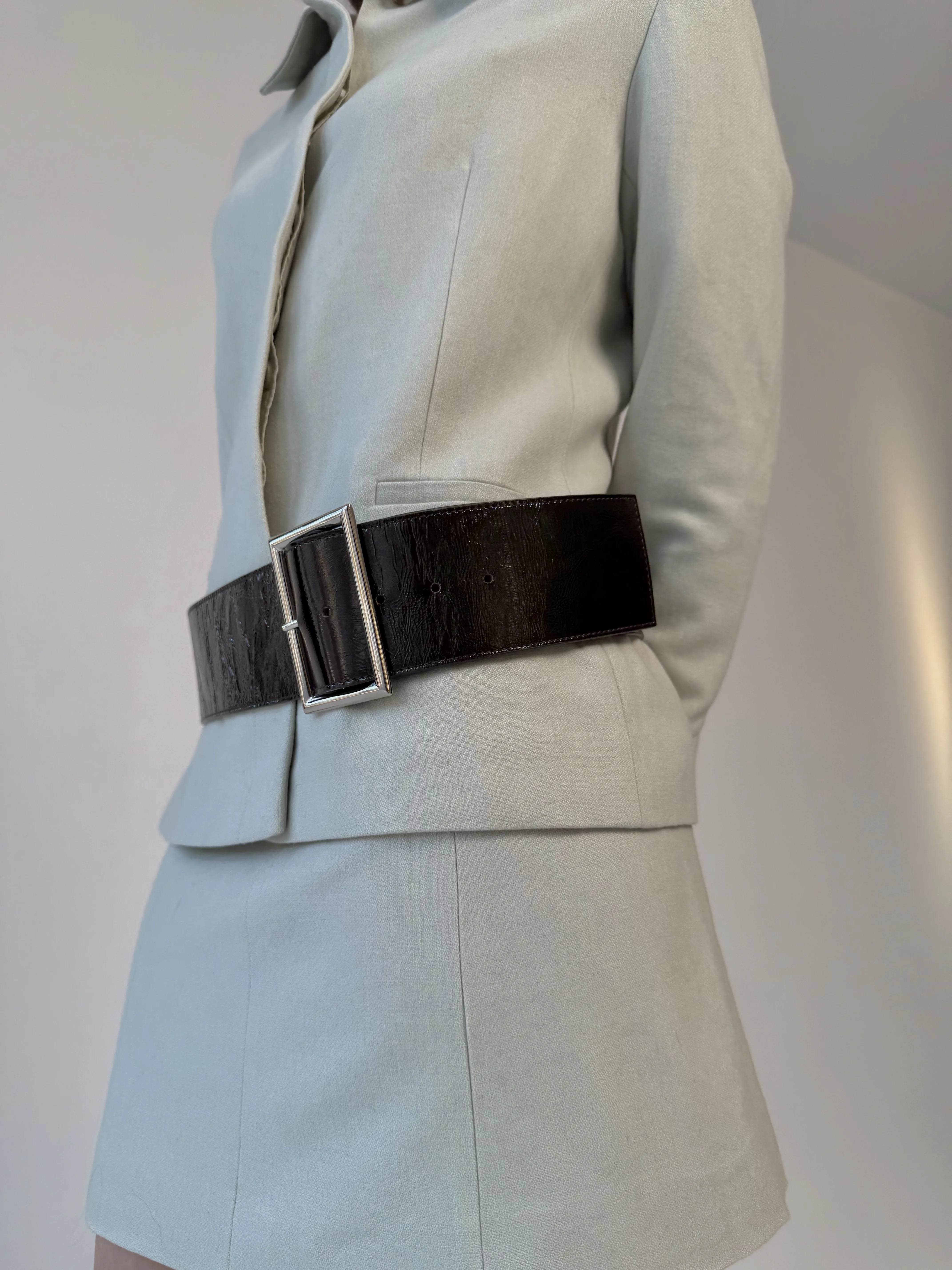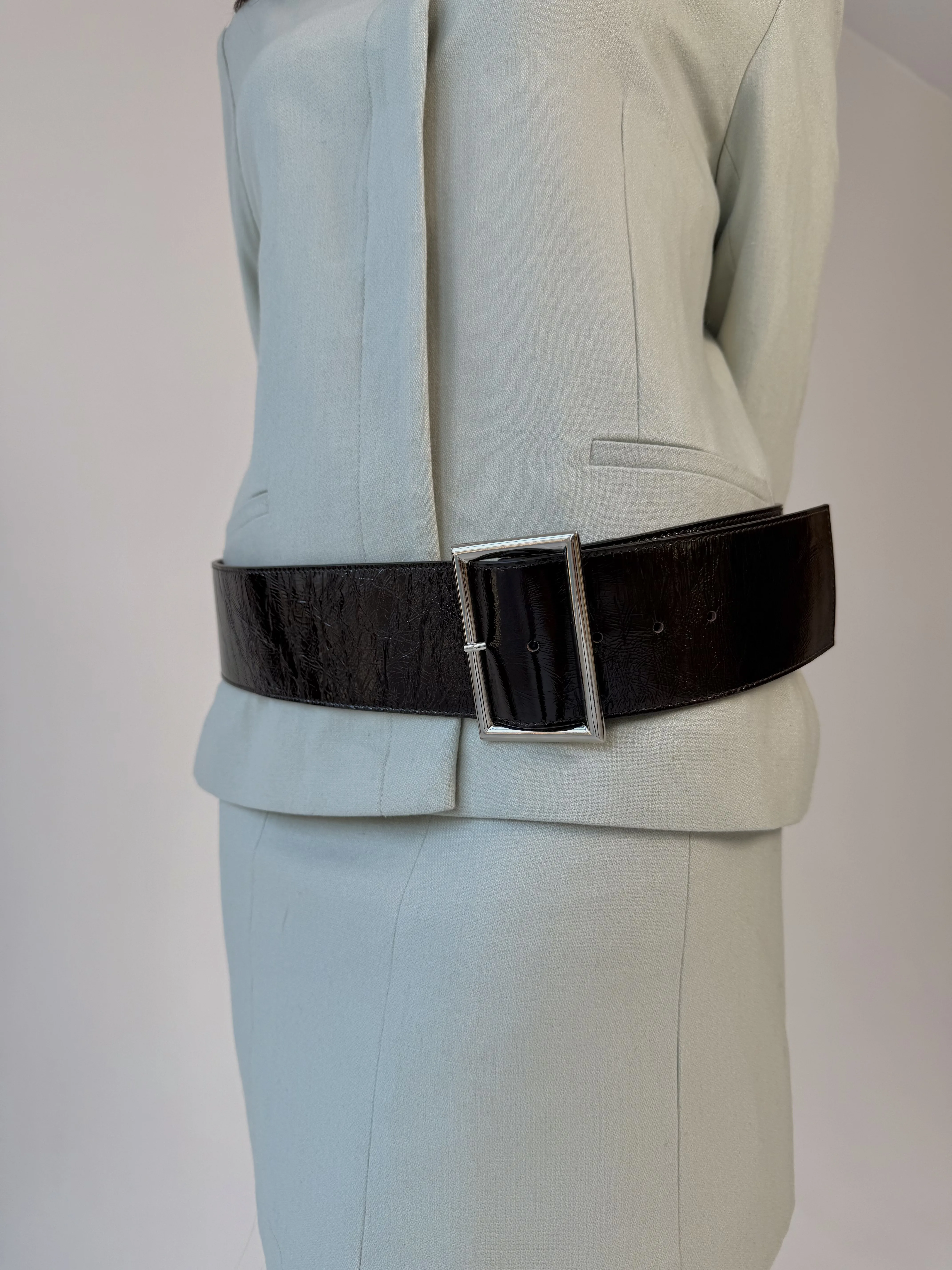 Leather belt made of glossy leather, with a nubuck finish on the reverse side and a striking silver buckle.