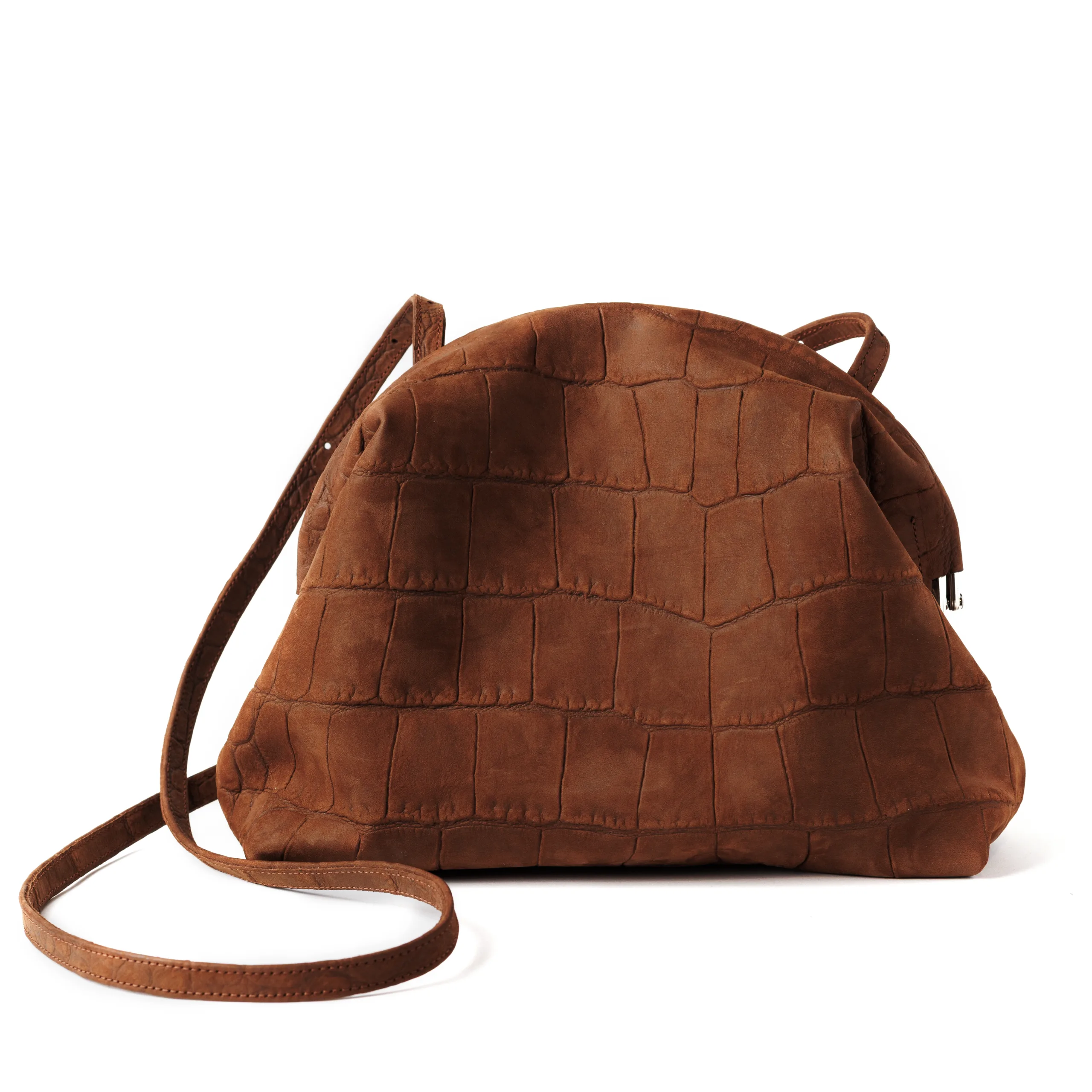 This leather bag features a distinctive slouchy silhouette. Its strap is adjustable and detachable, allowing you to wear it crossbody or carry it as a clutch, making it a versatile accessory for any occasion. The spacious interior is finished with a neat lining, complete with a small pocket and metal clasps.